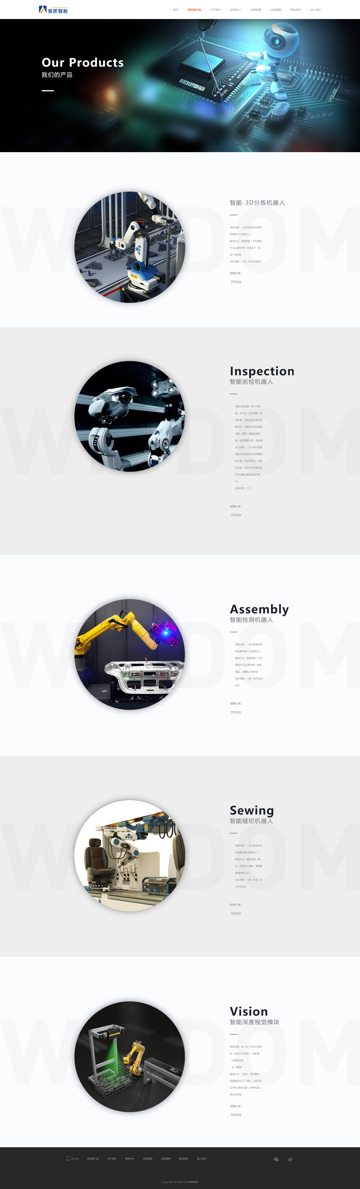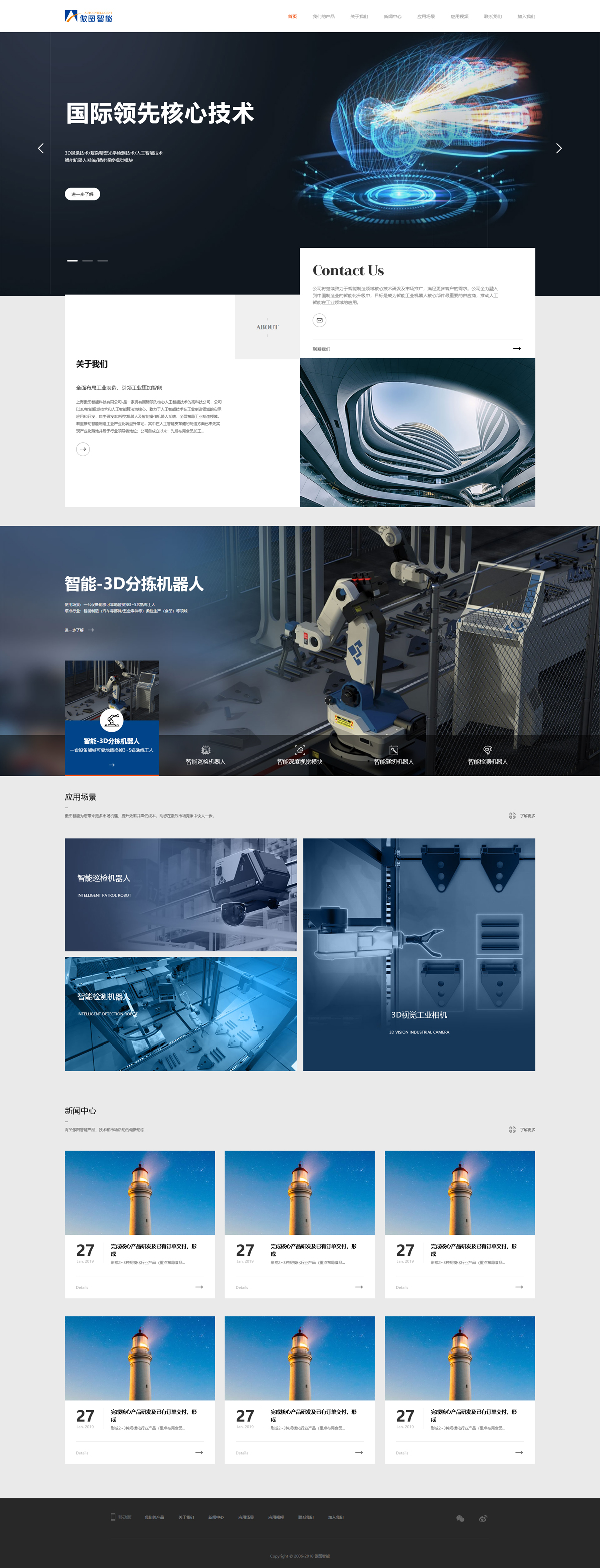 作為一個(gè)研發(fā)生產(chǎn)智能機(jī)器人的企業(yè),網(wǎng)站建設(shè)時(shí)從產(chǎn)品應(yīng)用角度出發(fā),突出公司技術(shù)優(yōu)勢(shì),通過(guò)展現(xiàn)應(yīng)用場(chǎng)景和應(yīng)用視頻,讓客戶對(duì)品牌有更直觀的感知,達(dá)到營(yíng)銷(xiāo)效果。