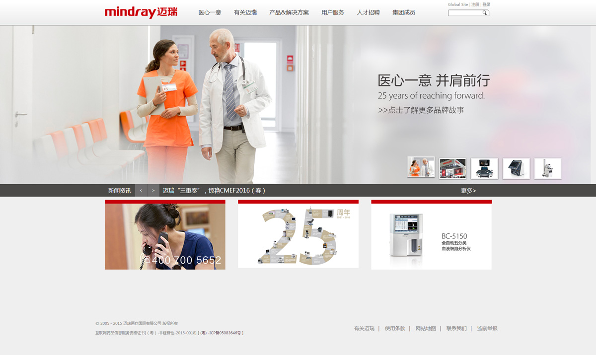 全球領(lǐng)先的醫(yī)療設(shè)備與解決方案供應(yīng)商。邁瑞總部設(shè)在中國(guó)深圳,在北美、歐洲、亞洲、非洲、拉美等地區(qū)的31個(gè)國(guó)家設(shè)有41家子公司,在中國(guó)設(shè)有32家分公司,雇員近10000名,形成了龐大的全球研發(fā)、營(yíng)銷和服務(wù)網(wǎng)絡(luò)。邁瑞融合創(chuàng)新,緊貼臨床需求,幫助世界各地人們改善醫(yī)療條件、降低醫(yī)療成本。目前,邁瑞的產(chǎn)品與解決方案已應(yīng)用于全球190多個(gè)國(guó)家,中國(guó)近11萬家醫(yī)療機(jī)構(gòu)和95%以上的三甲醫(yī)院
