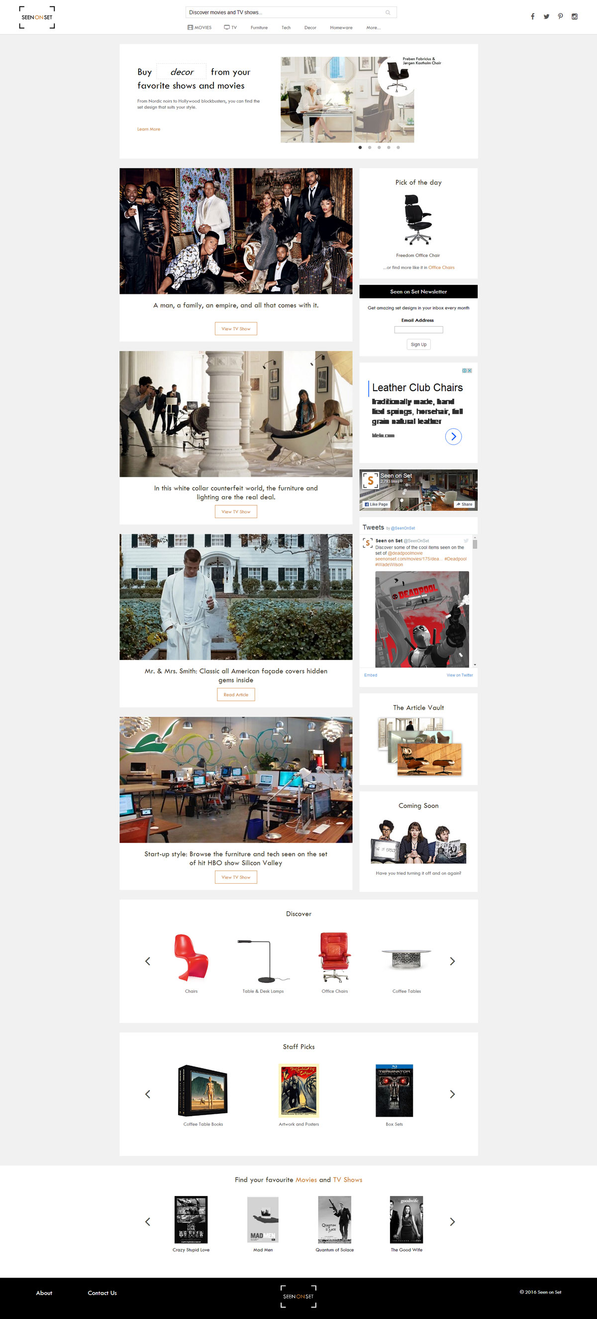 一家致力于銷售電影和電視劇中的創(chuàng)意家具和家具裝飾裝修的站點,喜歡美劇的用戶也許會注意到里面有很多不錯的家具和裝飾效果,但是不知道從哪里購買,該網站提供了不錯的平臺