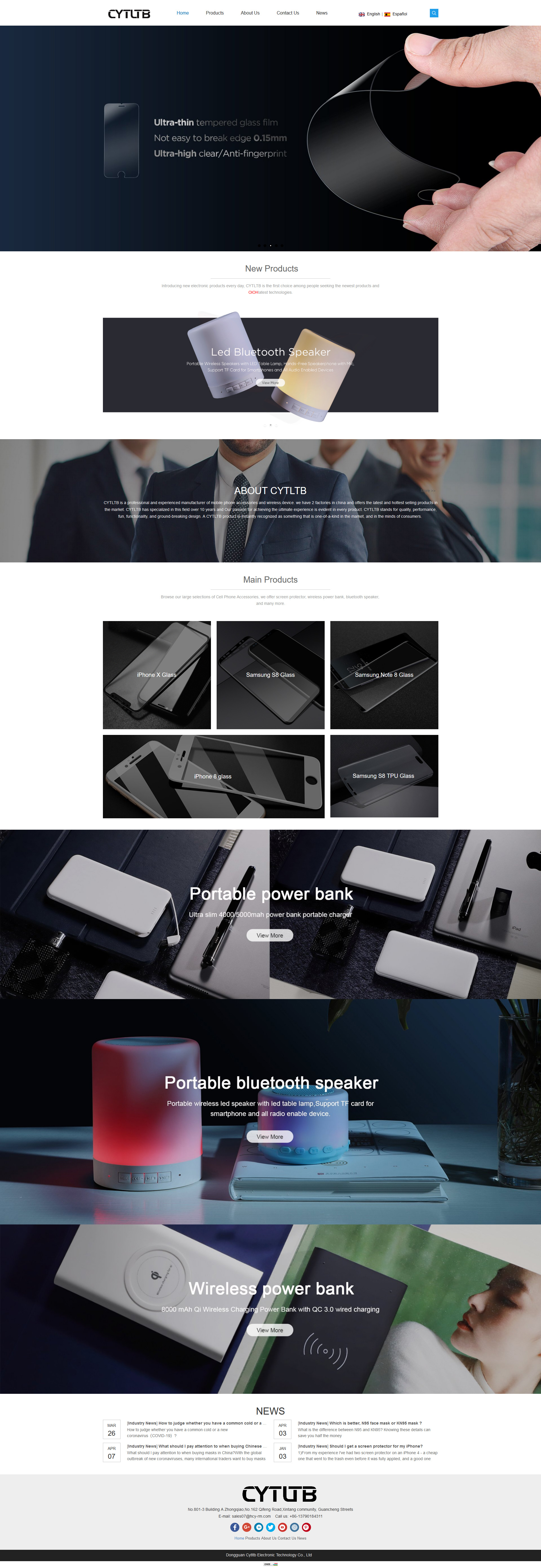 網站支持英文和西班牙語,是一個外貿獨立展示型品牌網站,國外的網站設計簡潔風,公司的產品是手機鋼化玻璃保護膜/手機殼等配件。
